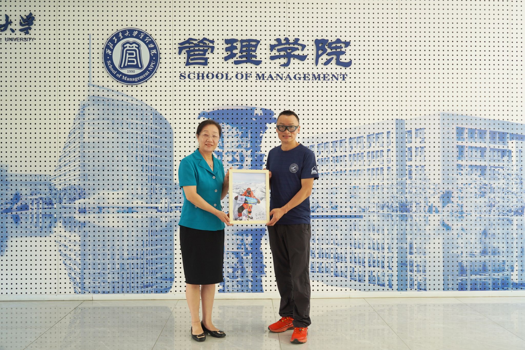 两位嘉宾的坚韧和勇气让在场的师生们深感敬佩,与会学生围绕登山运动、个人发展等感兴趣的问题,和两位嘉宾进行了探讨交流。张爽代表学校向余国明赠送了礼物,余国明回赠了登顶珠峰的签名照片。