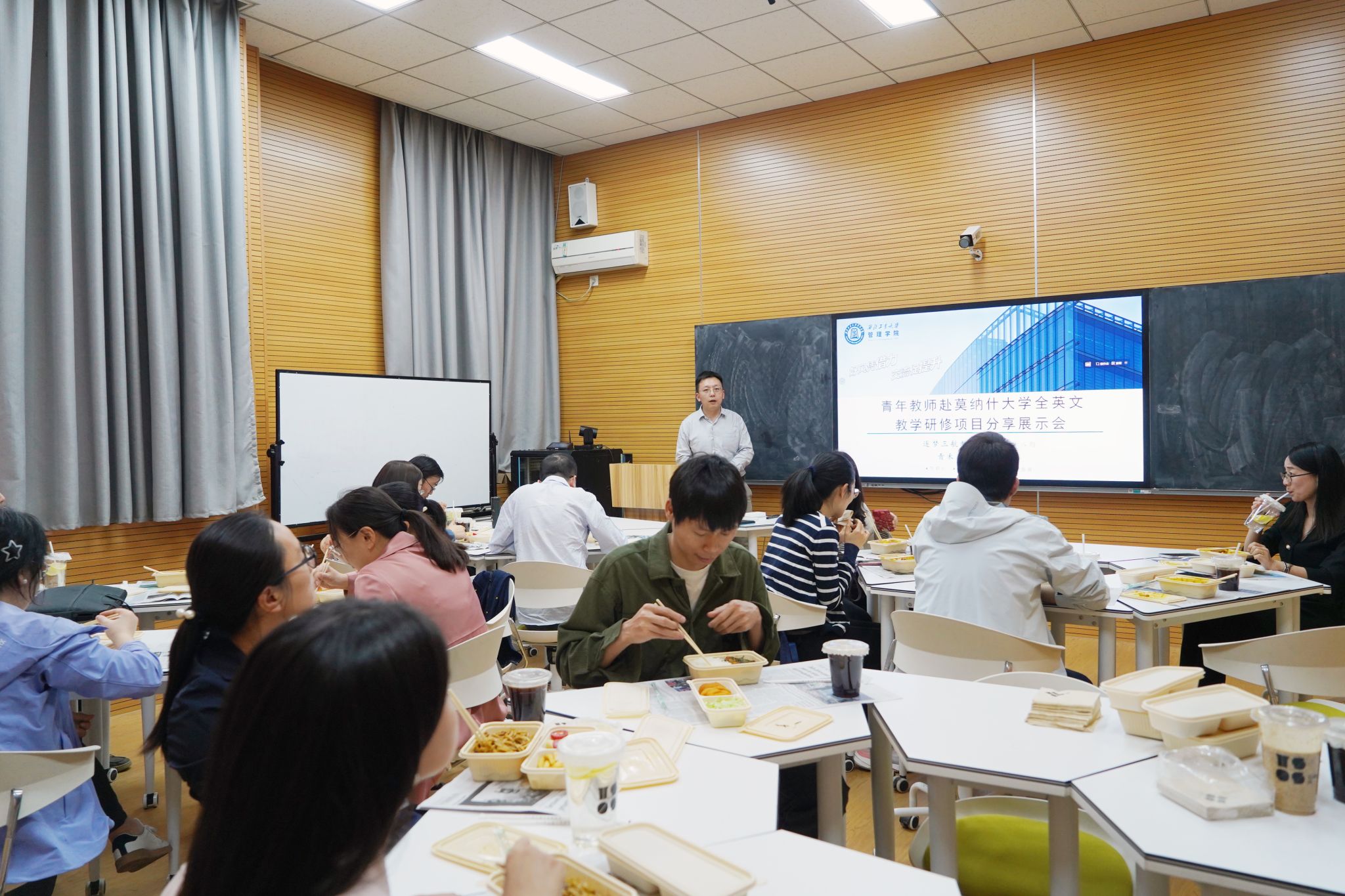 为深化教育教学改革创新,拓宽教师国际化视野,进一步推动教育教学理念与方法的迭代升级,4月16日,由西北工业大学党委教师工作部主办、管理学院承办的第18期“逐梦三航”教师沙龙暨第29期青禾沙龙——莫纳什大学全英文教学研修项目分享展示会在长安校区管理学院120会议室成功举办。管理学院董雪艳副教授、刘慧副教授作为莫纳什大学全英文教学研修项目参训教师代表,展示汇报了该项目的学习成果。本次活动由管理学院院长助理李乘龙主持,三十余位青年教师参与研讨。