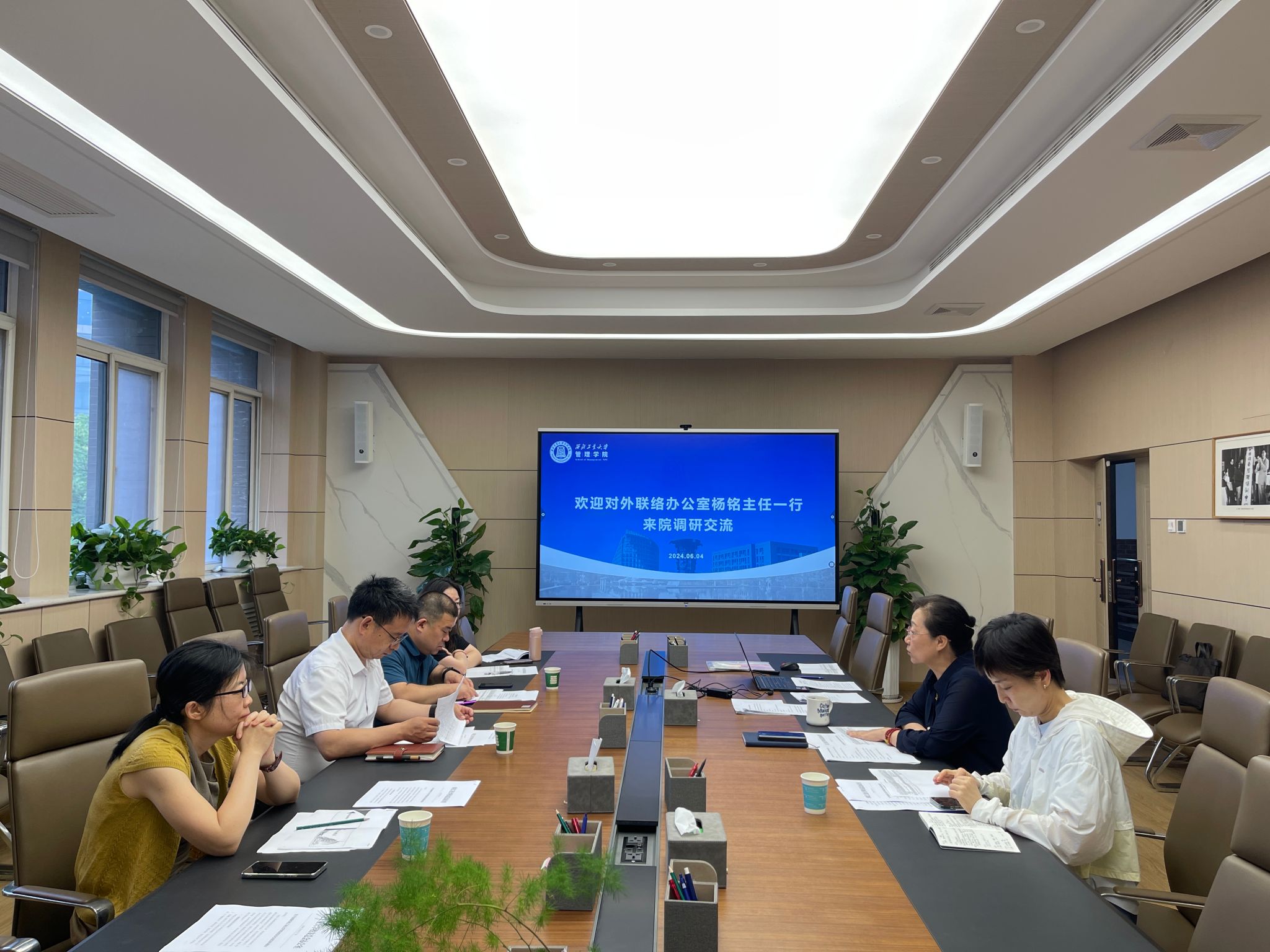 6月4日上午,学校对外联络办公室主任杨铭一行莅临管理学院调研交流。管理学院党委书记张爽、学院办公室业务主管翟润等相关人员参加了座谈会。