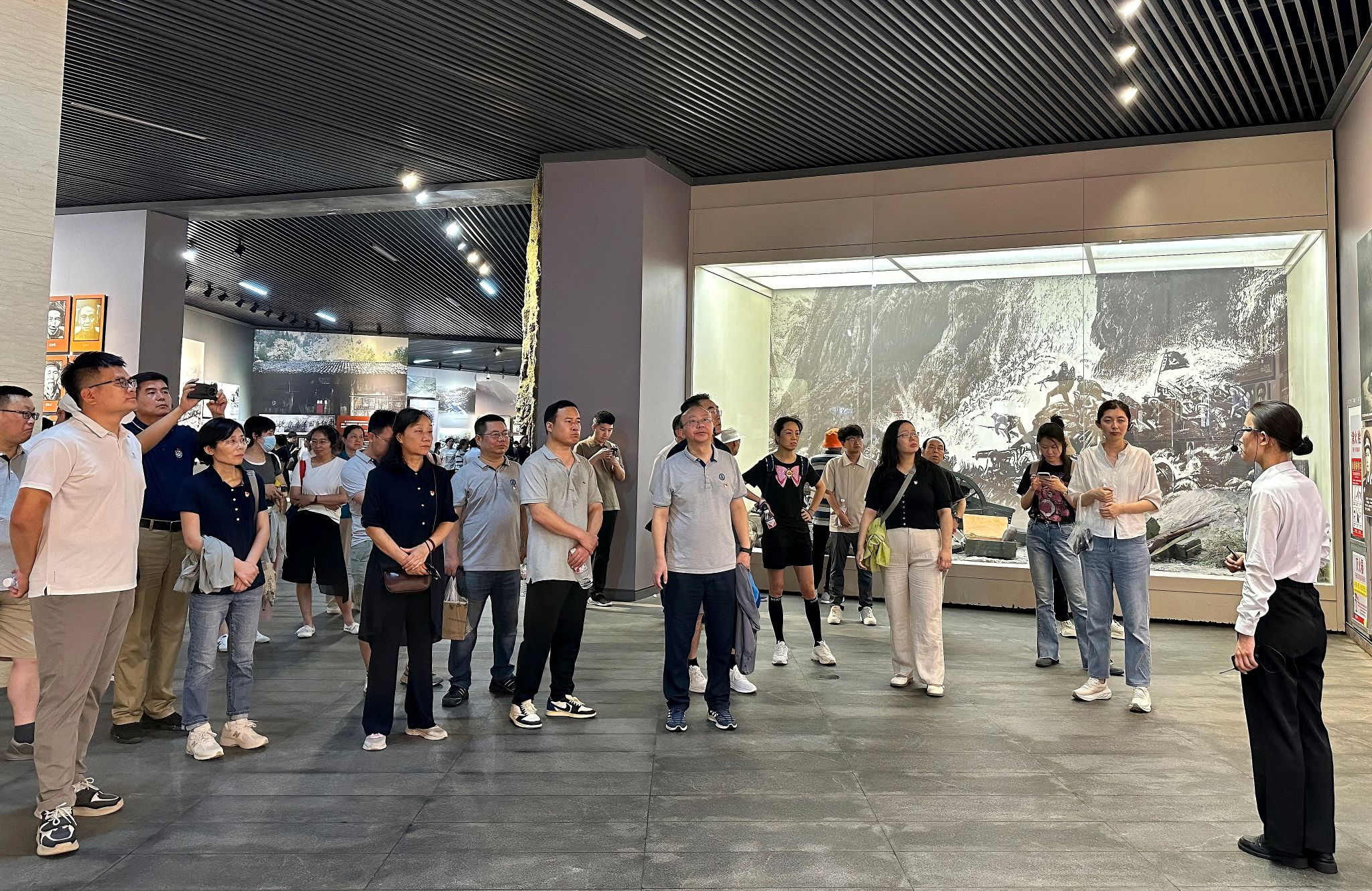 随后,大家集体前往娄山关战地遗址参观学习。娄山关北距巴蜀,南扼黔桂,为黔北咽喉,兵家必争之地,作为红军长征途中的重要战场,见证了红军不畏艰难、英勇作战的历史。在娄山关脚下,大家集体朗诵毛主席《忆秦娥·娄山关》,切身感受诗中所描绘的宏伟景色与磅礴气势。沿着红军曾经的足迹,倾听讲解员介绍当年红军战士们面对重重困难仍奋勇前行的故事,参观红军与国民党军队激战时留下的战壕与坑洼。在娄山关红军战斗遗址陈列馆,通过大量珍贵的历史照片、文物、雕塑等艺术手段,大家多角度、全方位地回顾了当年娄山关战斗的历史背景、战斗状况和将士风范,共同回顾那段波澜壮阔的革命岁月,深刻体会共产党人矢志不渝的革命热情和崇高的理想信念。