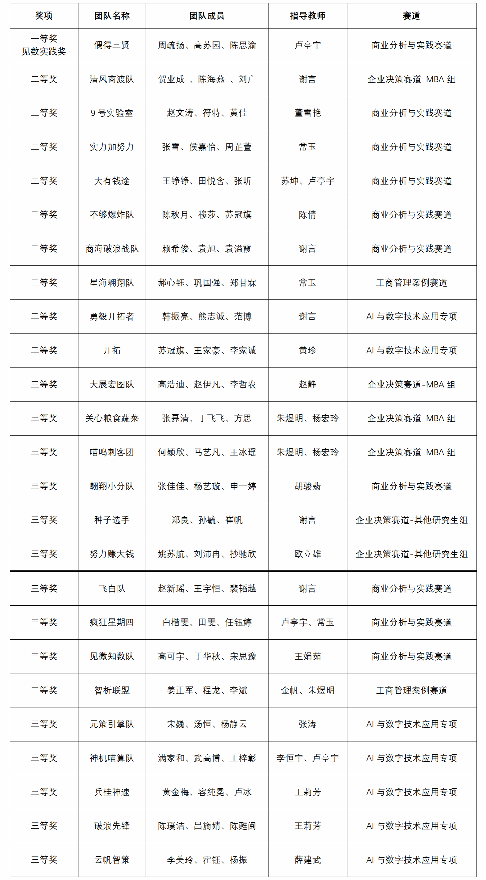 Focusing on the core challenges of enterprise management in the digital and intelligent era, the competition set up four tracks: the Enterprise Decision-Making Track, the Business Analysis and Practice Track, the Business Administration Case Track, and the Special Track for AI and Digital Technology Application. It put forward higher requirements for participating teams in terms of theoretical application, data insight and solution implementation capabilities. Our school demonstrated strong competitiveness in all tracks and achieved outstanding results across the board. In the Business Analysis and Practice Track, we not only won 1 National First Prize, 5 National Second Prizes and 4 National Third Prizes, but also received high praise from the proposition enterprise for the outstanding practical application achievements of the team Oude Sanxian, successfully seizing the track’s top honor — the Jianshu Practice Award. The team’s supervisor, Professor Lu Tingyu, was also awarded the Excellent Supervisor Award. In the Enterprise Decision-Making Track, we won 1 Second Prize and 5 Third Prizes; in the Business Administration Case and Digital Technology Track, 1 Second Prize and 1 Third Prize respectively; and in the Special Track for AI and Digital Technology Application, 2 Second Prizes and 5 Third Prizes.
