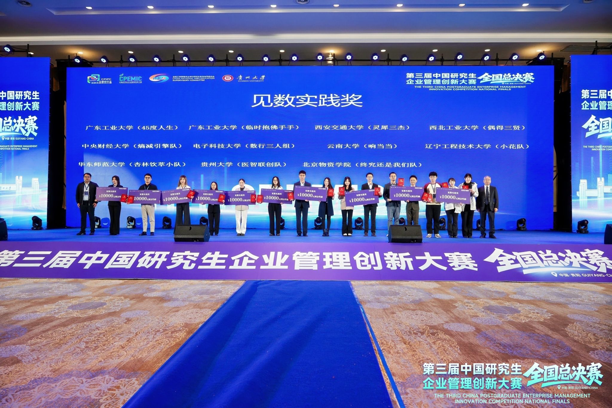 From November 7 to 9, the 2025 3rd China Postgraduate Enterprise Management Innovation Competition National Finals concluded successfully in Guiyang. As a national-level competition guided by the Department of Degree Management and Postgraduate Education of the Ministry of Education, sponsored by the Chinese Society of Academic Degrees and Graduate Education and the China Association for Science and Technology Youth Science and Technology Center, and co-sponsored by the National Professional Degree Graduate Education Steering Committee for Business Administration, this year’s competition reached a new high in both competitiveness and participation scale — a total of 411 postgraduate teams from 150 universities across the country took part in the national finals. With solid professional competence and efficient team collaboration, students from the School of Management won a total of 26 awards, and notably claimed the Jianshu Practice Award, the highest honor of Track 2 (only 11 such awards nationwide, with a winning rate as low as 1%). Our university also won the title of Excellent Organizing Unit for the third consecutive year, demonstrating its outstanding strength in talent cultivation.