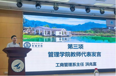 车阿大代表学院向2023级研究生表示热烈欢迎,并介绍了管理学院的基本情况。管理学院办学历史悠久,多项学科位国内前列,建立了完善的教育教学及培养质量保障体系,并拥有强有力的师资队伍支撑。他希望,同学们能掌握扎实的基础理论、系统的专业知识、以及从事科学研究和独立思考的能力。