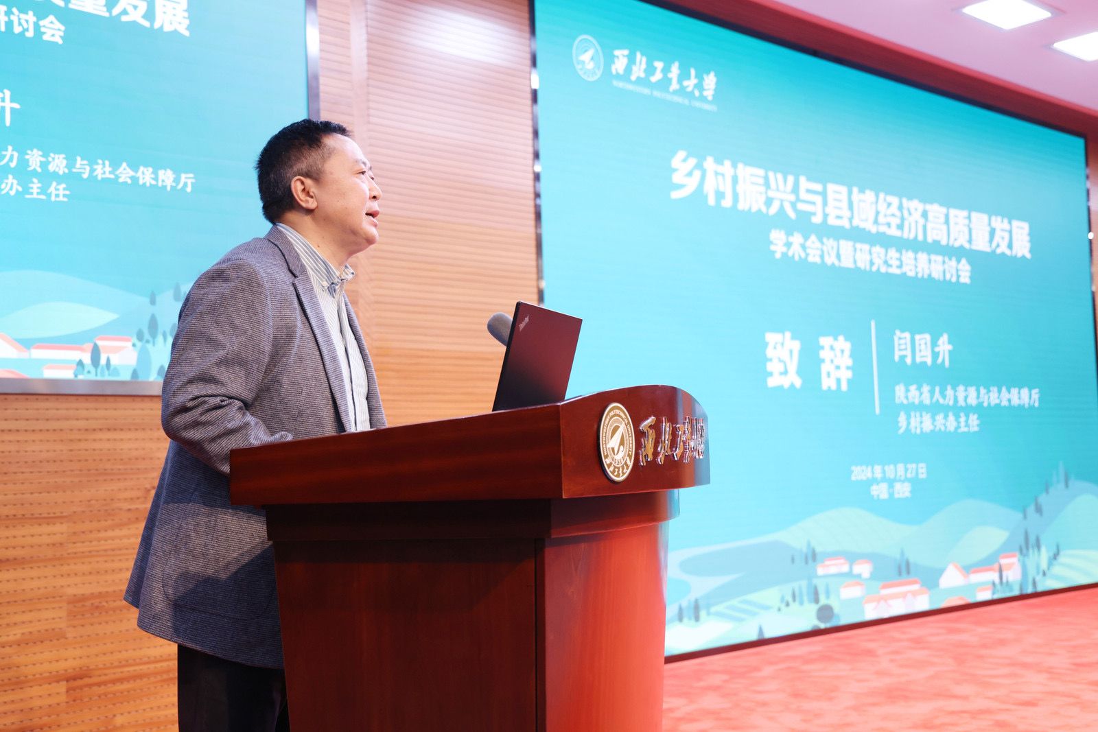 2024年10月27日,首届乡村振兴与县域经济高质量发展学术会议暨研究生培养研讨会在西北工业大学友谊校区隆重召开。会议着眼未来,旨在交流探讨当代乡村振兴与县域经济高质量发展遇到的现实挑战和相关实践问题,探索乡村振兴与县域经济高质量发展的新路径与新模式,为未来政策发展提出改革方向,共同推动县域经济高质量发展不断向前超越。来自国内知名高校、科研机构和重要核心期刊单位的200多名专家、学者和学校师生代表参加会议。