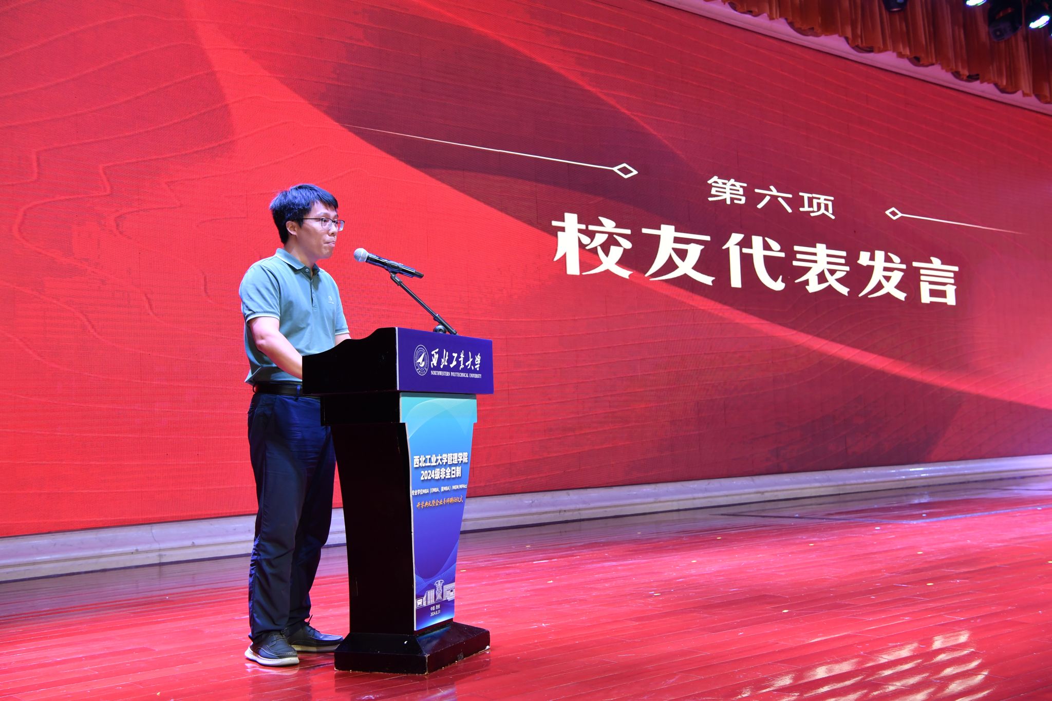优秀校友任金伟分享求学历程,他表示在西工大遇良师、得益友,收获了毕生的宝贵财富。希望学弟学妹们珍惜学习的机会、勇于尝试、挑战自我,祝愿所有新生收获知识、友谊与成功,创造辉煌的未来。
