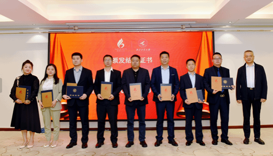 结业学员代表和新学员代表先后发言后,工业和信息化部人才交流中心服务处处长白晓、陕西省工业和信息化厅非公经济发展处处长张进、西北工业大学管理学院院长车阿大、党委书记乔彩燕等为结业学员颁发结业证书和表彰奖牌,为新学员代表授班旗、佩戴领军徽章和西北工业大学校徽,传承“聚是一团火,散是满天星,领军一家亲,全国有亲人”的领军精神和文化。