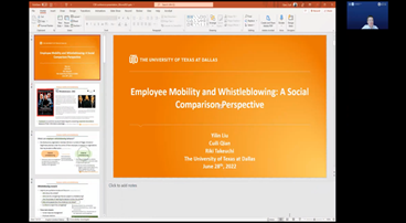 随后,德克萨斯大学达拉斯分校Naveen Jindal商学院(Naveen Jindal School of Management)的Prof. Cuili Qian汇报了有关员工流动性、公平感方面的研究成果。
