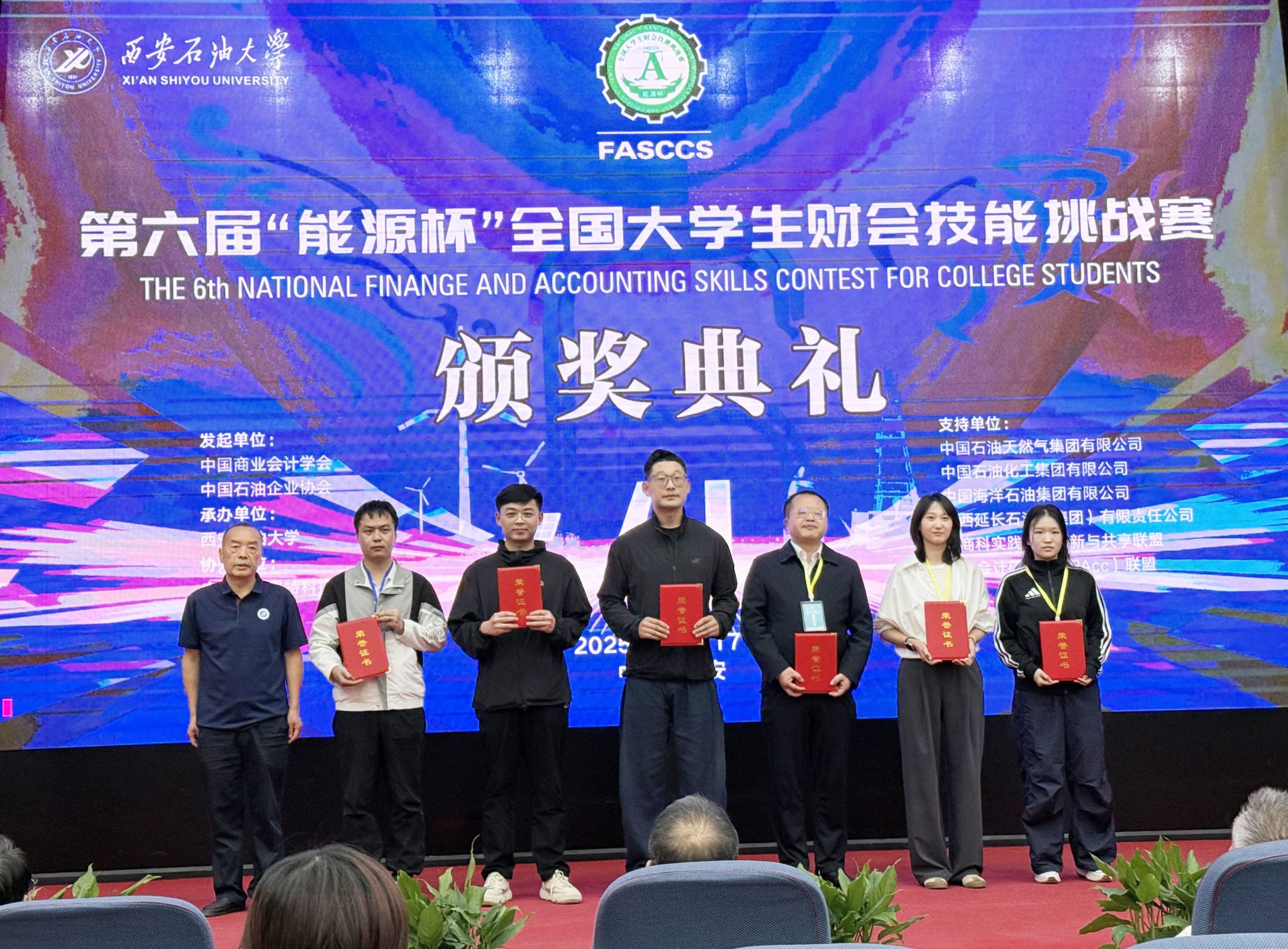 近日,第六届 “能源杯”全国大学生财会技能挑战赛在西安石油大学雁塔校区落下帷幕。由西工大管理学院学子组成的 “必胜客”代表队(队员王宇昕、贾晶晶、林飞彧、杨利通)在杨萍、陈琳两位教师的指导下,从全国 37 支参赛队伍中脱颖而出,一举斩获全国一等奖,西工大获评 “优秀组织单位”,杨萍、陈琳老师荣获 “优秀指导教师” 称号,实现赛事成绩与组织荣誉的双丰收。