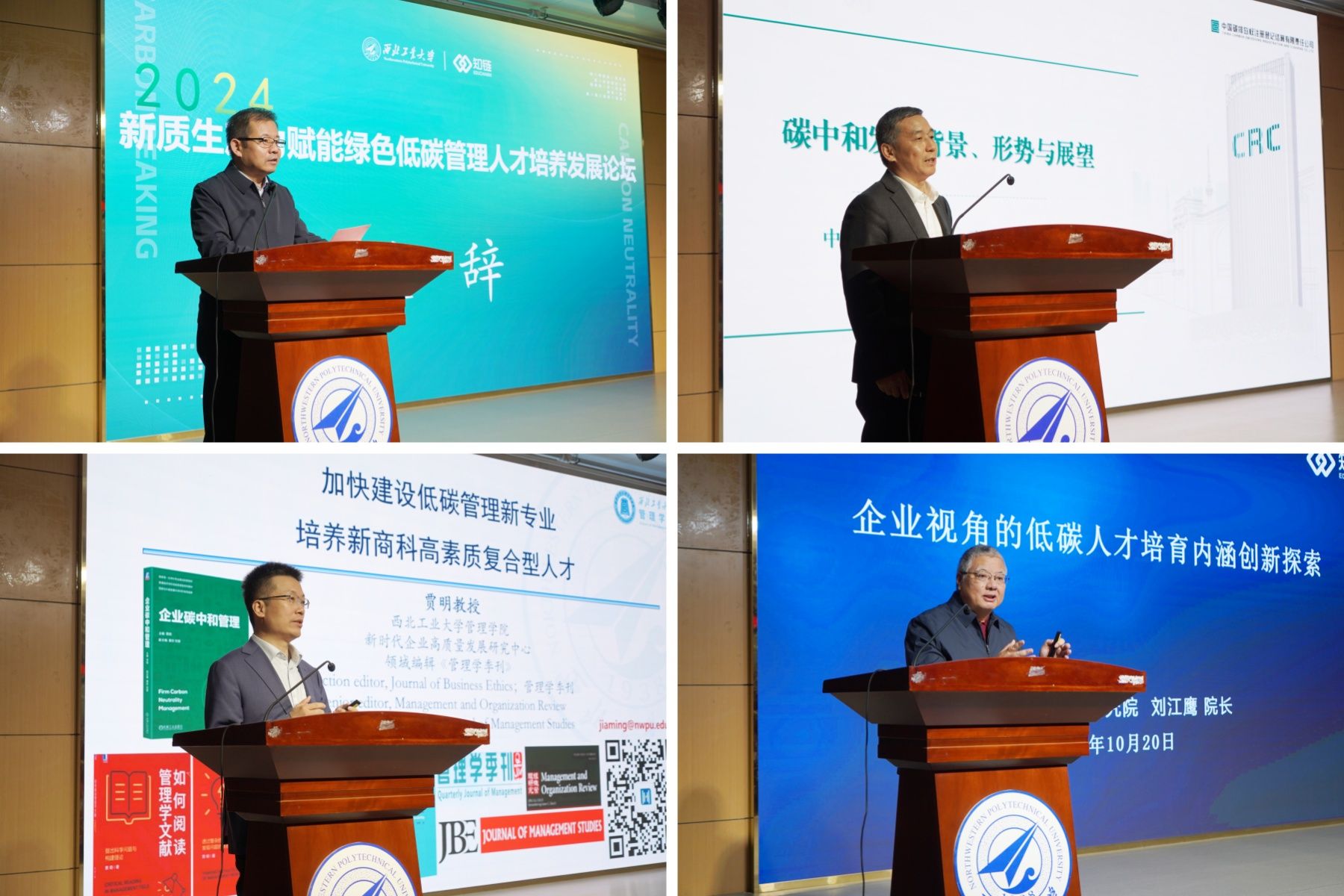 比赛进行过程中,部门领导、专家学者及参赛队指导教师参加了“新质生产力赋能绿色低碳管理人才培养发展论坛”。本次论坛汇集了学术界、产业界和政府部门的精英,共同深入探讨了在碳中和背景下的发展机遇与挑战。论坛由西北工业大学管理学院副院长陈琳教授主持。陕西省教育科学研究院院长邵国希以“共谋绿色发展”为主题为论坛开幕致辞;碳排放权登记结算(武汉)有限责任公司总经理朱国辉发表了题为“碳中和发展背景和形势”的演讲;西北工业大学管理学院副院长贾明阐述了以“建低碳管理专业,育绿色低碳人才”的办学理念;北京知链科技有限公司研究院院长刘江鹰分享了题为“企业视角的低碳人才培育内涵创新探索”的思考。论坛在与会嘉宾和参会者的合影留念中圆满结束。